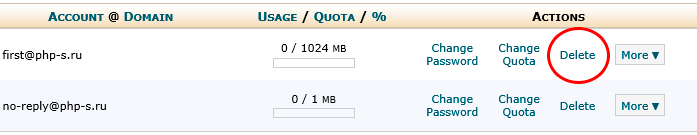 Главная Страница » Книги по PHP » cPanel - руководство и подробная инструкция » Удаление e-mail аккаунта в cPanel