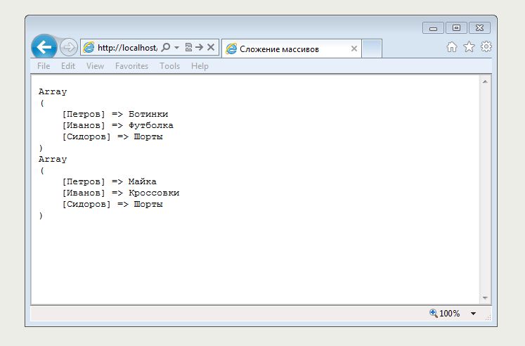 Главная Страница » Книги по PHP » Самоучитель PHP 5 для чайников с примерами » Сложение массивов в PHP